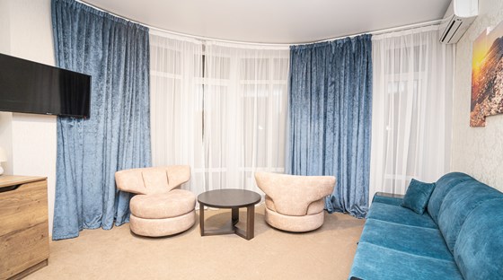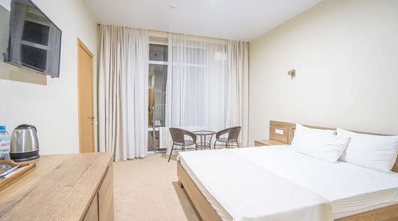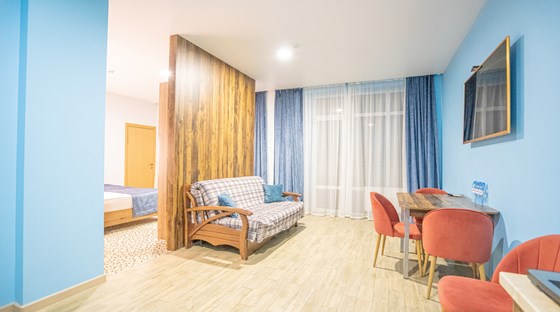 Номера от 18 до 70 м2, панорамное остекление, балконы с уличной мебелью